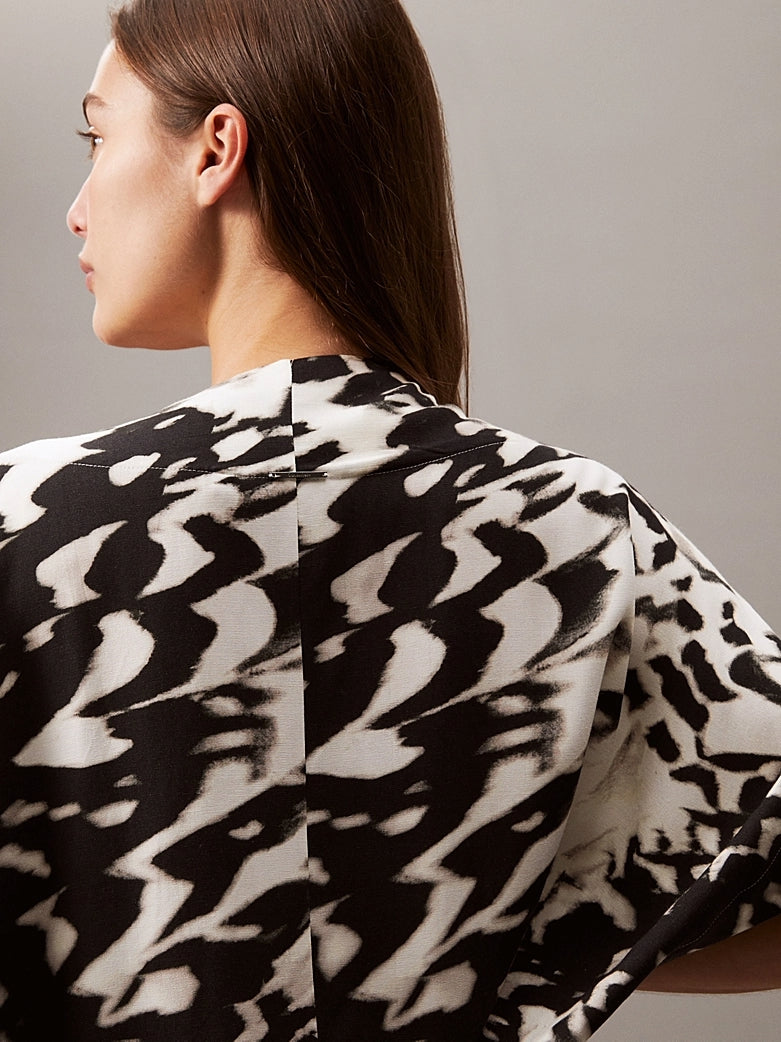 Kimonoen har en løs passform med åpen front og brede, korte ermer for en avslappet silhuett. Den kan enkelt knytes igjen med et bånd i front, som er utstyrt med diskré metallender preget med Calvin Klein-logo. Som en subtil signatur er også logoen brodert i nakken bak.